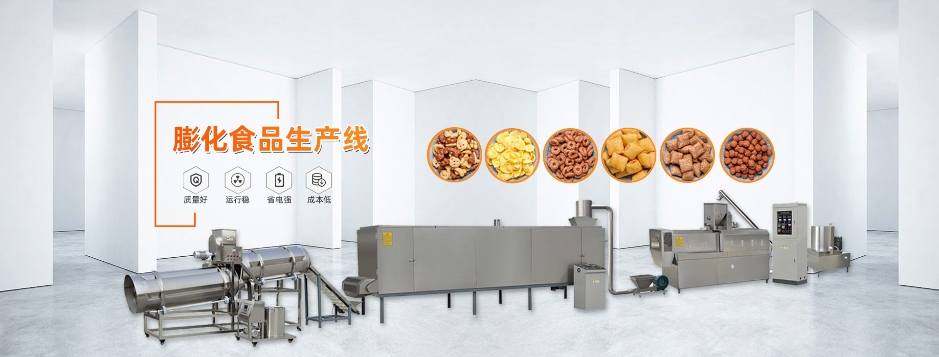 公司主營產品:休閑食品膨化機,狗糧膨化機,魚飼料膨化機,玉米片膨化機,大米膨化機,營養粉膨化機,組織蛋白膨化機,大豆膨化機,妙脆角膨化機,薯條薯片膨化機,鍋巴膨化機,米通米果膨化機,油炸膨化機,黃金角膨化機,變性淀粉膨化機,方便面生產線以及微波烘干殺菌設備。